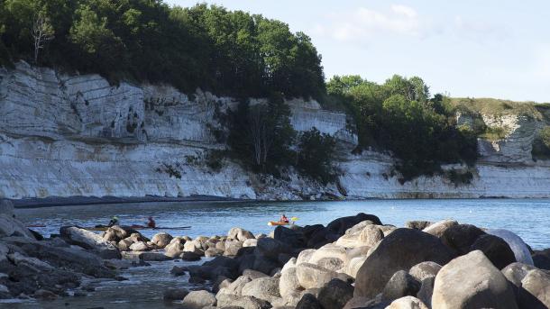 Stevns Klint er en 41 meter høy klippe, beståede av kritt og kalk som ble dannet for 65 milioner år siden, da Danmark enda var dekket av dypt hav. Om sommeren kan kalken på havbunnen farge vannet i utrolige blåfarver. Over troner den hvite klippen med et vell av tre tronende på toppen. På slike dager kan man nesten se for seg den sagnomspundne Klippekongen i sin sommerbolig i en av klippens huler.