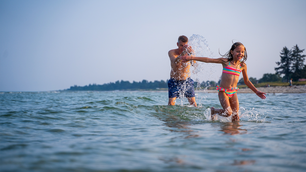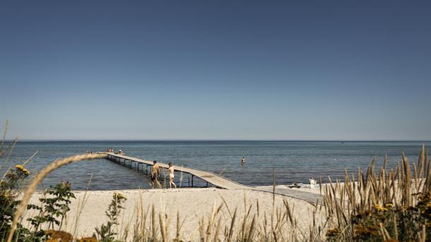 Perfekt beliggende mellom Horsens Fjord og Vejle Fjord finner du Storstranden i havnebyen Juelsminde - en bred, rolig og ekstra barnevennlig sandstrand som ligger sentralt i nærheten av det summende bylivet. Her får du virkelig gode is, en kjempehyggelig lystbåthavn og en strand med gode fasiliteter, en flunkende ny badebrygge og rikelig med tumleplass.