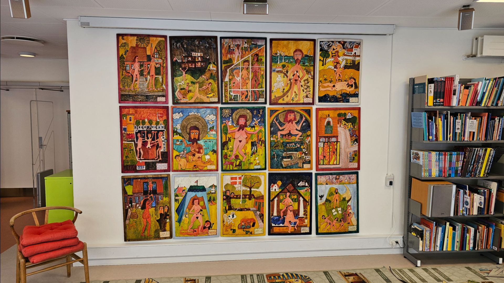Gud som beskægget kvinde, nøgne engle og Josef i Nordbys bybrønd! På Samsø Bibliotek hænger en bemærkelsesværdig altertavle med farvestrålende, naivistiske og erotiske bibelskildringer indsat i samske omgivelser. Af Mie Petri Lind