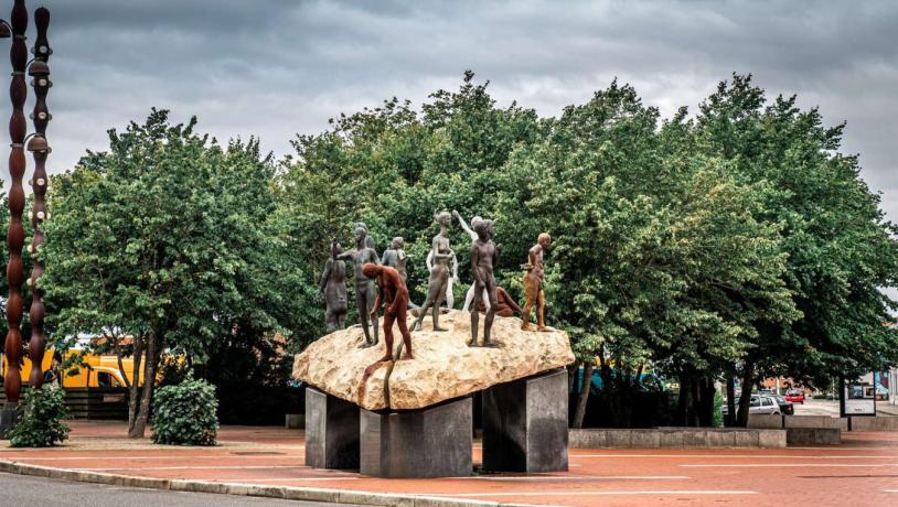 Bare to mil bortenfor Sevel Kro ligger Holstebro, en trivelig småby som er kjent for å ha en av Danmarks mest sjarmerende gågater med trivelige butikker og livlige kaféer, samt et rikt kulturliv. Selve symbolet på Holstebros kulturliv er skulpturen «Kvinde på Kærre», som 150 år etter den ble oppført fortsatt hylles for å ha bragt kunst og kultur til byen. Byen har også flere flotte skulpturer og kunstverk rundt omkring, som f.eks 'Borgerne fra Holstebro', som er avbildet over.